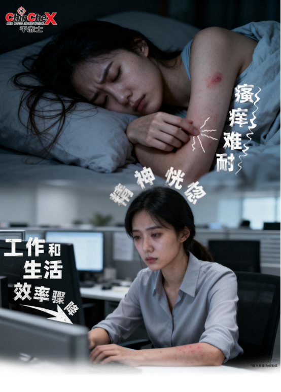 No, no!它们可特别会“钻空子”—— 藏在车厢、行李箱里,随着国际旅行增多四处扩散;酒店、学生宿舍是高发地,就连热门的中古家具、二手箱包也是它们的藏身窝。夜里被反复叮咬,身上冒出红肿包,痒到一直抓挠,皮肤敏感的人还可能引发过敏甚至休克......
