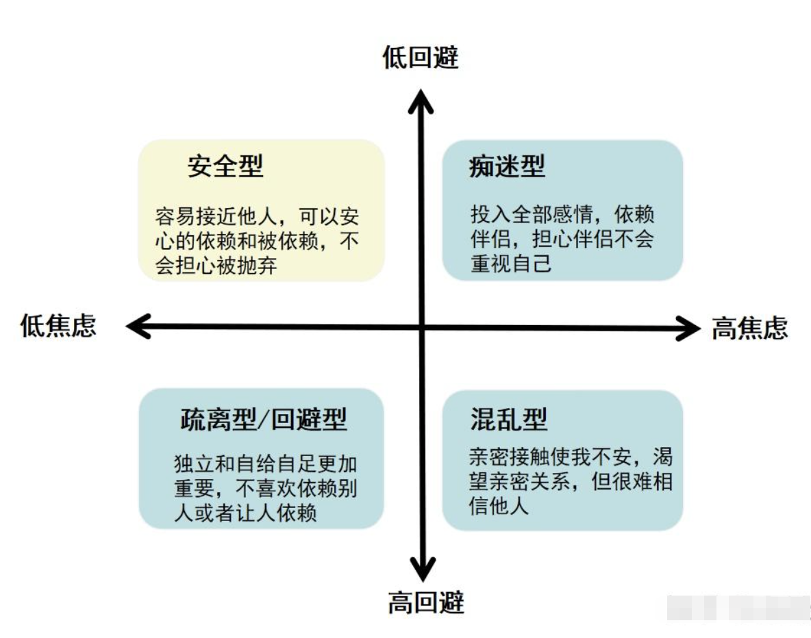 01:08 四种依恋类型速查:安全、焦虑、回避、混乱。