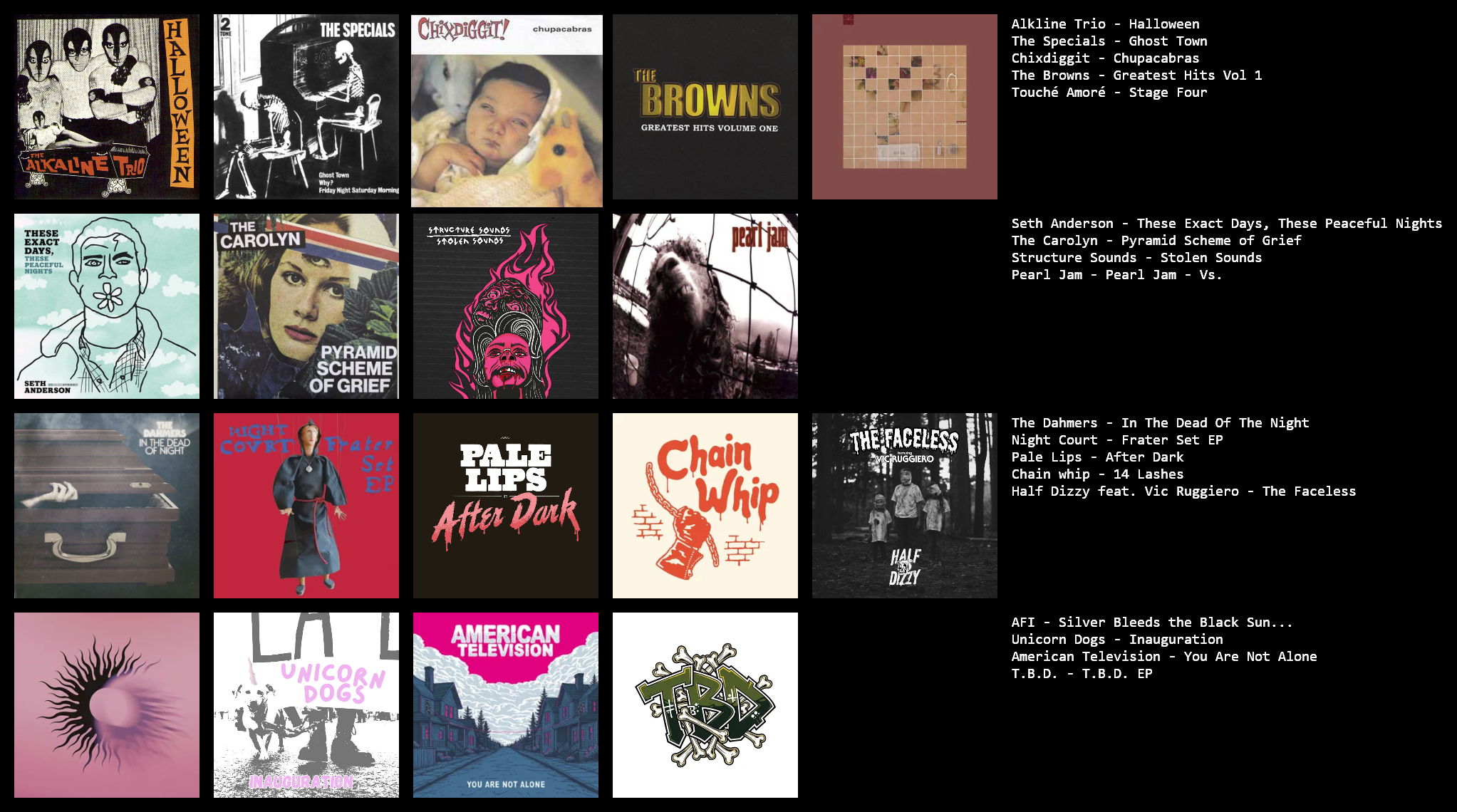 We would love to hear your favorite punk and punk adjacent songs get your ready for Halloween and if you are feeling up to it your favorite Halloween Costume or memory.
