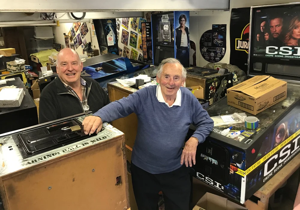 Phil & Roger have been friends in the pinball industry for many years. Phil as an operator and distributor for Data East and Gottlieb. Roger, initially producing wall mounted “penny games” and then as an importer and distributor of video arcade machines and Williams pinball (1960’s - !991). He also owned the Fun City arcade in Auckland.