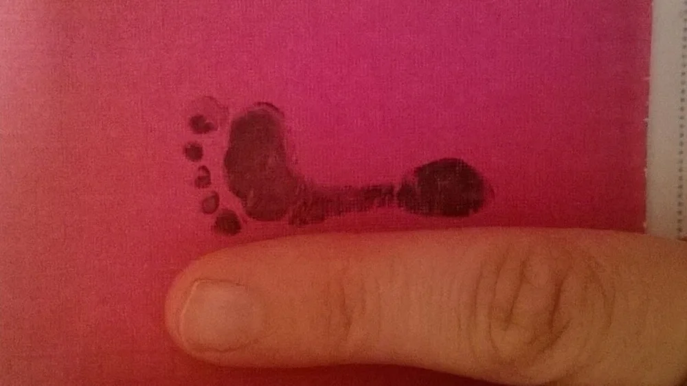 Tiny footprint, demonstrating how little you need to be dilated for a breech premature infant to start delivering through the cervix.
