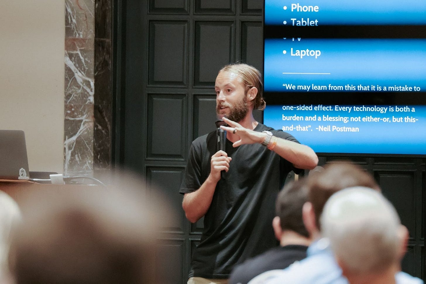 His solution: Humanality villages — small groups that commit to practicing healthy technology practices, hold each other accountable, and gather weekly for educational opportunities, such as watching informative vid