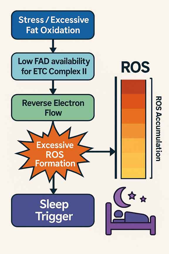 Understanding sleep in this way reframes it as a metabolic safeguard, not wasted time. It explains why you feel heavy fatigue after stressful days or long bouts of endurance exercise — the fuel mix in your body has shifted in ways that clog your energy system and accelerate cellular stress. At the same time, it shows why people with healthier metabolisms often get by with far less sleep: their mitochondria run cleaner, leak fewer electrons, and create less damage to repair.
