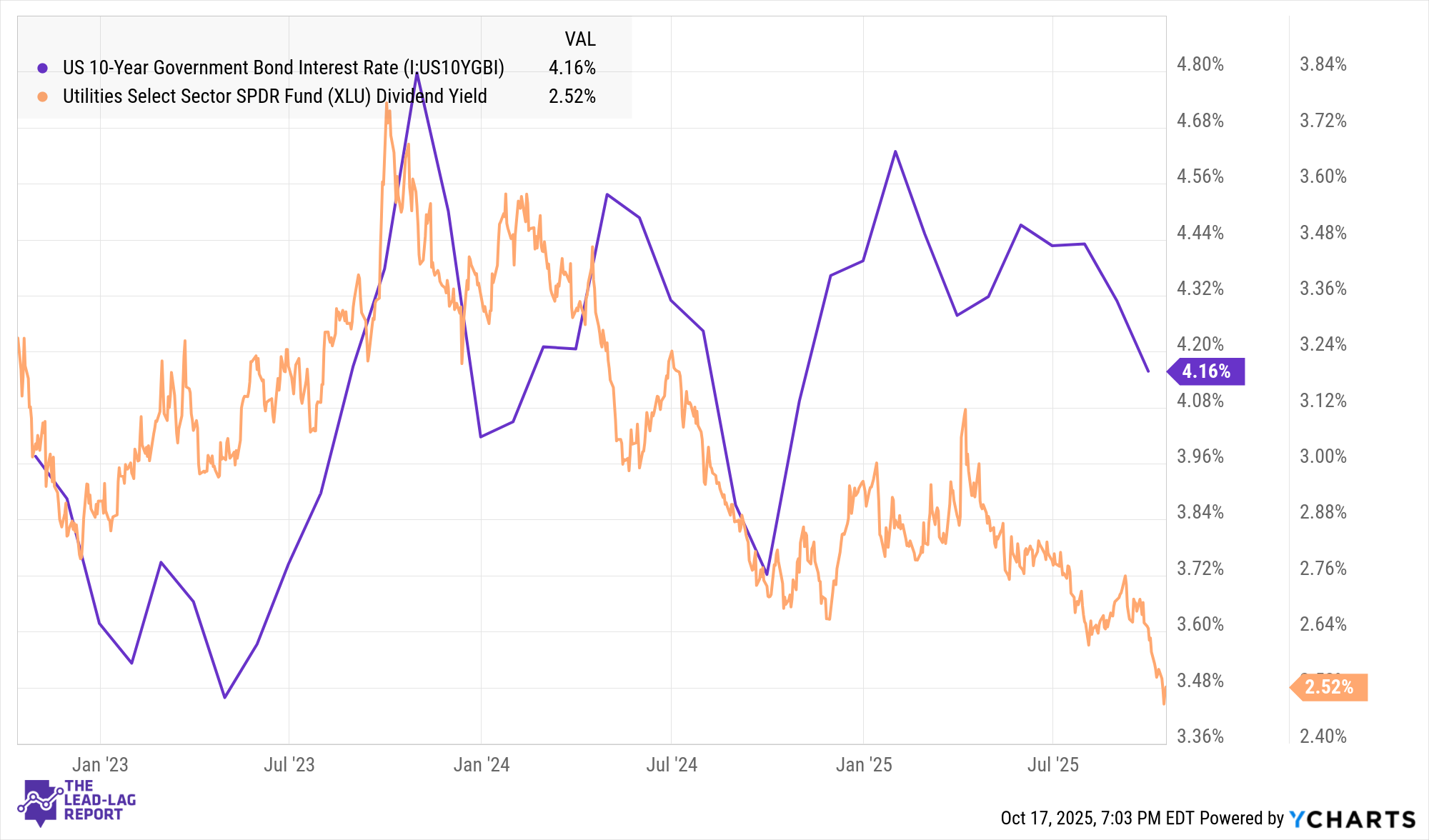 Investors seeking income face a challenge: the S&P 500 yields below 2%, offering limited cash flow versus historical norms¹. Early optimism around a potential Federal Reserve pivot drove yields lower and lifted defensive sectors. As those expectations moderated, Treasury yields rebounded, cooling speculative excesses. Utilities—historically interest-rate sensitive—may benefit if the Fed continues to lean towards easing, as falling yields enhance dividend appeal and lower borrowing costs. Whether rates fall through disinflation or slowdown, utilities tend to outperform in uncertain environments, making income-focused strategies like UTG increasingly relevant.