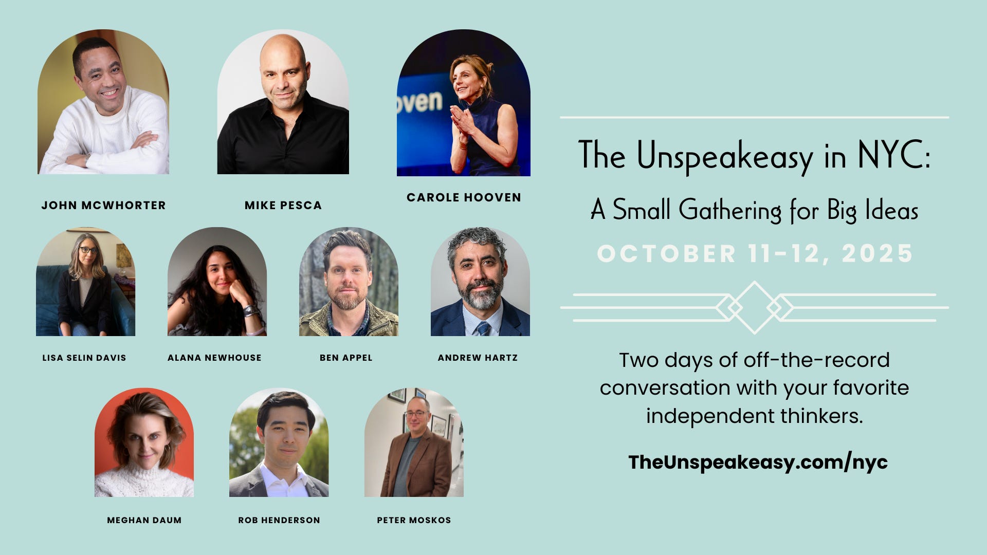 Rob will be a speaker at our Unspeakeasy Small Gathering for Big Ideas weekend, October 11-12 in New York City. Programming and ticketing info here.