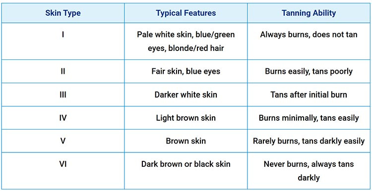 Consider your Fitzpatrick phototype — It’s a guide that describes how certain skin colors react when exposed to sunlight. Thus, it can be used to help you determine how much time you need to be exposed during the day. Here’s a chart from DermNet to help you:6