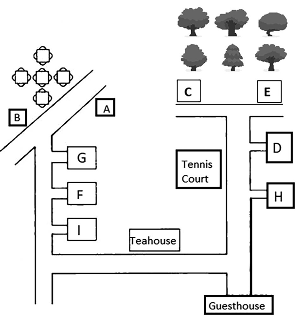 Questions 17-20 Label the plan below. Write the correct letter, A-I, next to Questions 17-20.