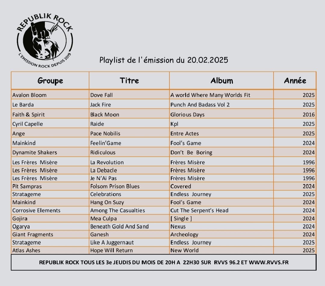 Et toujours une belle playlist 100 % Rock , Punk, Metal Made In France avec :