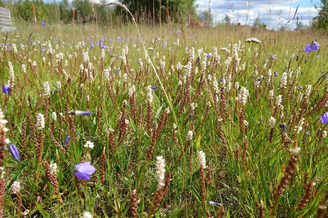 Blomsteräng i Luleå med bland annat ormrot, röllika och blåklocka.