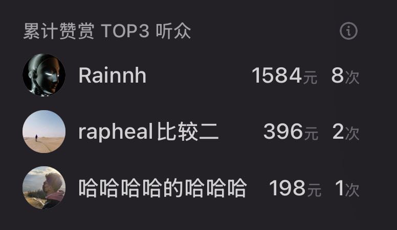 💗截至当期,隆重感谢累计赞赏榜单TOP3的听众👑「 Rainnh 」🥈「 rapheal比较二 」🥉「 哈哈哈哈的哈哈哈 」,所有的赞赏都将会作为我们的节目营销支出,让我们彼此可以在茫茫人海中寻找到更多臭味相投的同伴一路向前、无问东西。