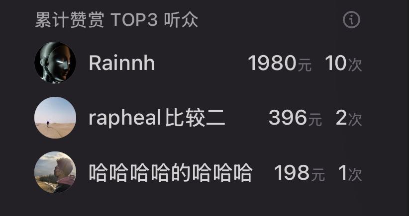 💗截至当期,隆重感谢累计赞赏榜单TOP3的听众👑「 Rainnh 」🥈「 rapheal比较二 」🥉「 哈哈哈哈的哈哈哈 」,所有的赞赏都将会作为我们的节目营销支出,让我们彼此可以在茫茫人海中寻找到更多臭味相投的同伴一路向前、无问东西。