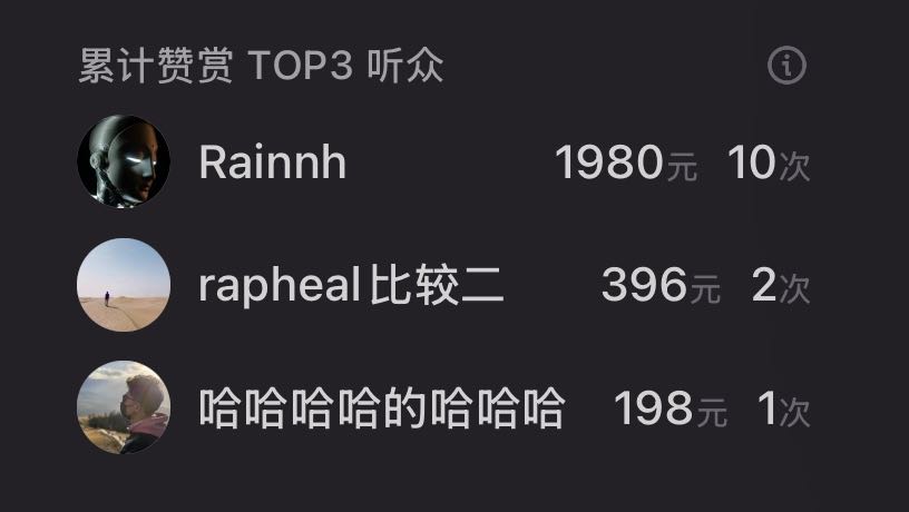 💗截至当期,隆重感谢累计赞赏榜单TOP3的听众👑「 Rainnh 」🥈「 rapheal比较二 」🥉「 哈哈哈哈的哈哈哈 」,所有的赞赏都将会作为我们的节目营销支出,让我们彼此可以在茫茫人海中寻找到更多臭味相投的同伴一路向前、无问东西。