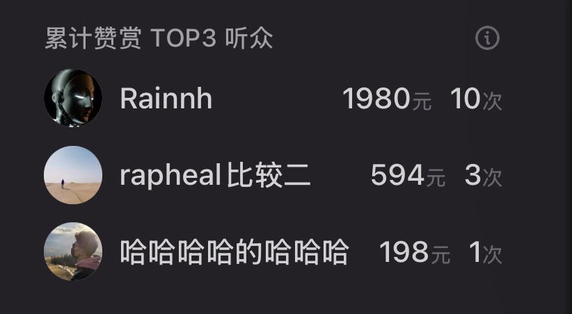 💗截至当期,隆重感谢累计赞赏榜单TOP3的听众👑「 Rainnh 」🥈「 rapheal比较二 」🥉「 哈哈哈哈的哈哈哈 」,所有的赞赏都将会作为我们的节目营销支出,让我们彼此可以在茫茫人海中寻找到更多臭味相投的同伴一路向前、无问东西。
