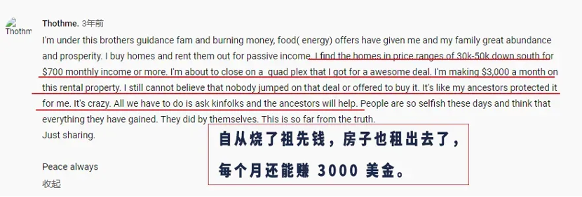 外国网友反馈的“祭祀”祖先之后的“回音”: