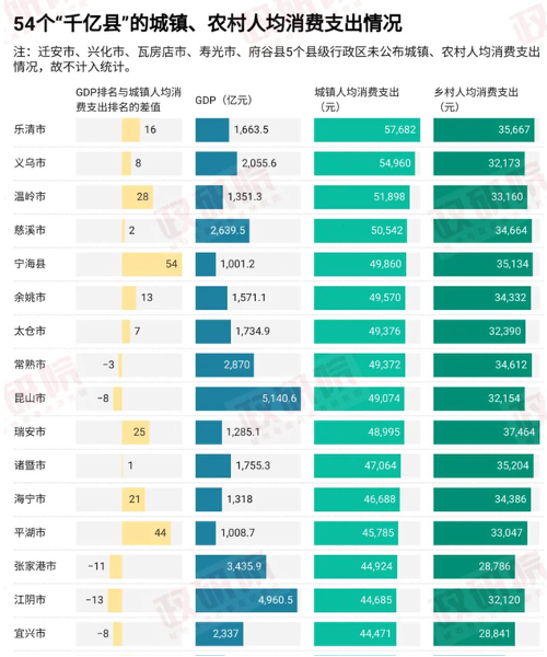 ● 中国县域城镇居民人均收入十强出炉:义乌第一,玉环第二,第一财经