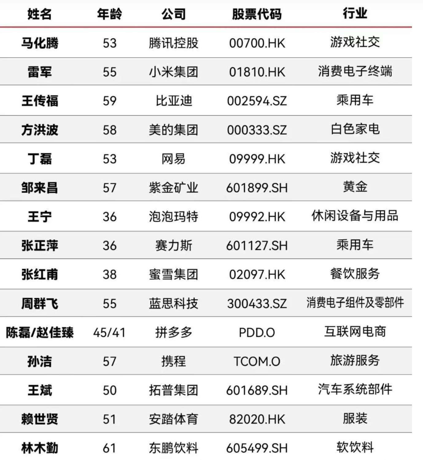 - 女性力量:周群飞(蓝思科技)等女性企业家占据重要位置