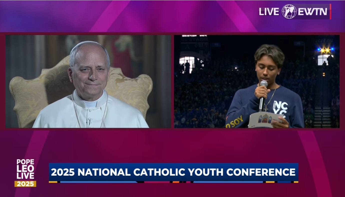 Pope Leo took part in a video discussion with participants at the 2025 National Catholic Youth Conference on November 21.