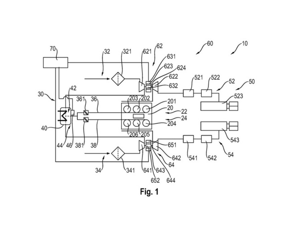 The result is seamless torque delivery, with each turbo able to correct itself independently using its in-built electric motor. The patent in question outlines a six-cylinder engine with two banks; however, the system can be adapted and scaled to any engine with a pair of parallel turbos that feed two cylinder banks through a shared intake plenum.