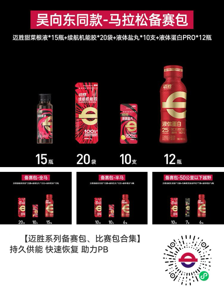 以下为本期节目提到的备赛和比赛补给,截图或保存下方图片到微信扫描码,进入迈胜微信小程序,或登陆各平台迈胜旗舰店,了解更多信息