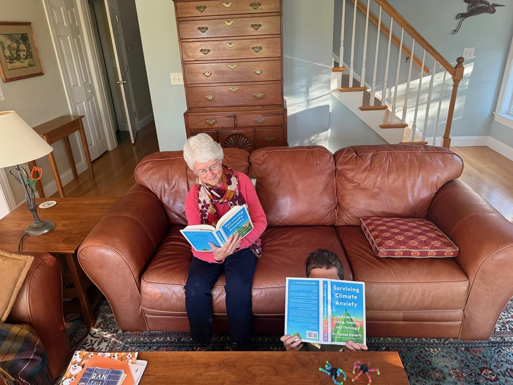 Doherty: Yeah, I think the mission is, you know, the subtitle speaks to the mission, you know, a guide to coping, healing and thriving. because, the climate anxiety, just like we have talked about many times in the podcast, that that's sort of like is the stimulus. That's what brings you into the space sometimes, that natural sense of anxiety or fear or concern.