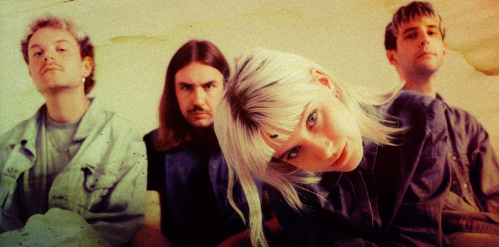Swim School were formed in late 2018 in Edinburgh. Initially comprising Alice Johnson, Lewis Bunting, Matt Mitchell, and Nairn Milne, they released their debut single, “Sway”, in February 2019.[3] Their debut performance was in Galashiels, took place in March 2019, and was a support slot for Indigo Velvet, another Edinburgh-based band. In October 2020, Johnson stated that their set had been marred by a “40-something stranger” heckling sexist abuse at Johnson before and during the performance, prompting her to struggle to hold back tears while performing and to break down after leaving.[4] They released their second single, “Take You There”, the following June. Swim School spent around a year gigging until the COVID-19 lockdown caused the band to concentrate on writing. Indigo Velvet’s guitarist Billy McMahon was invited to join the band in June 2020 after a period of him assisting with live streams.