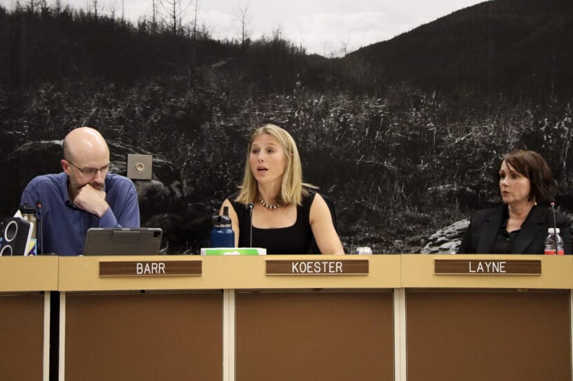 <figcaption class="wp-caption-text" id="caption-attachment-345311">City Manager Katie Koester speaks during a Juneau Assembly committee of the whole meeting on Monday, Nov. 4, 2025. (Photo by Clarise Larson/KTOO)</figcaption></figure>
