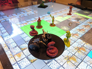 The party is immediately descended upon as they enter. A surprise attack round greets a battle-ready party as Stug takes out his whips, Dranas emits a holy aura (the best aura ever), Daryl conjures an aqueous orb, Sweets struggles to..., and Volkorn probably did something too. The party was in good spirits as it seemed things were going to turn out pretty great!