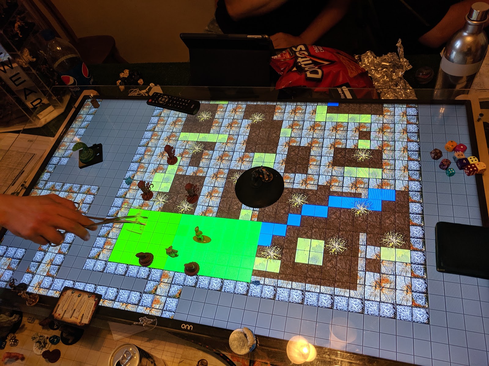 The first round of combat saw Stug take a fat rip of green-fog that causes him to run from battle, fleeing a hallucinatory snake in his hand, SweetChuck attempting to... , and Daryl confidently chugging a mysterious glowing potion that cost him his life, many times. As Daryl lay dying, Dranas does his best to keep him from danger and continues the offense.