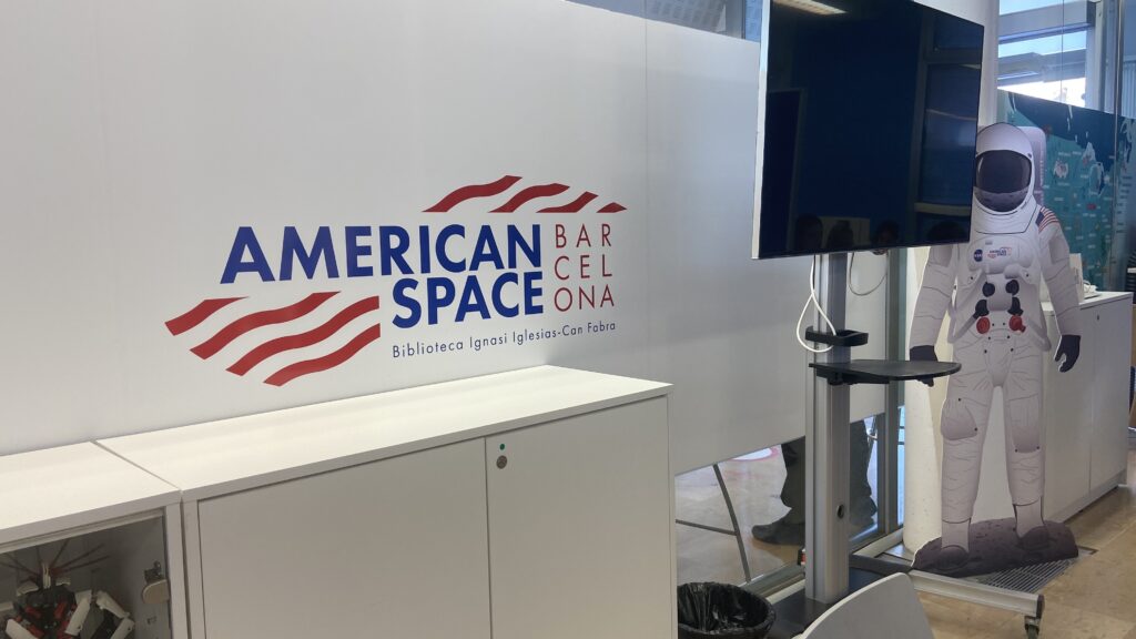 <figcaption class="wp-element-caption">A cardboard cutout of an astronaut is on display from the American Space Barcelona program at the Sant Andreu public library. The Trump administration severed ties with the group after it refused to cut its DEI programs.Gerry Hadden/The World</figcaption></figure>“It’s about sharing American culture and language,” Domingo said. “But also helping prepare young people for jobs, especially in technology. The whole idea [is] of inclusiveness, and equality, looking out for the most vulnerable.”