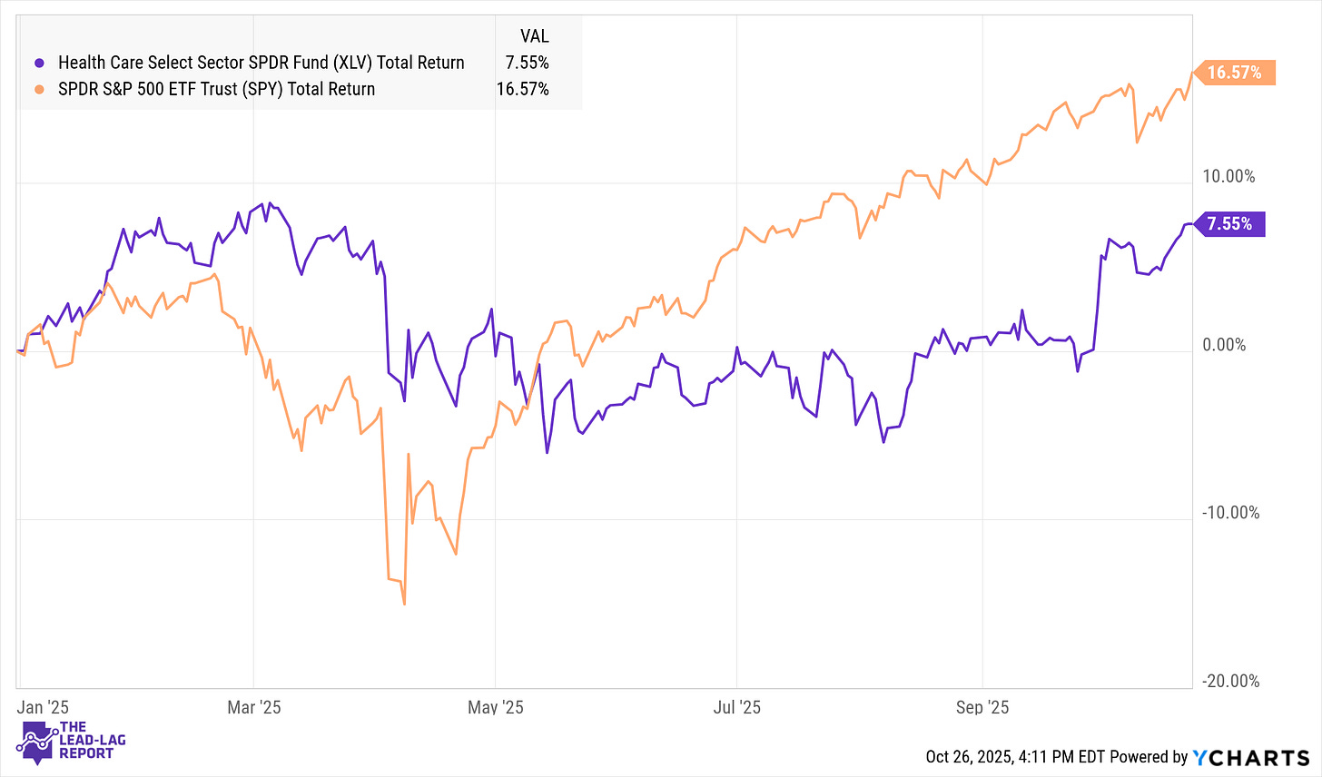 Healthcare has lagged the S&P 500 by hundreds of basis points year-to-date, extending a multi-year stretch of underperformance.