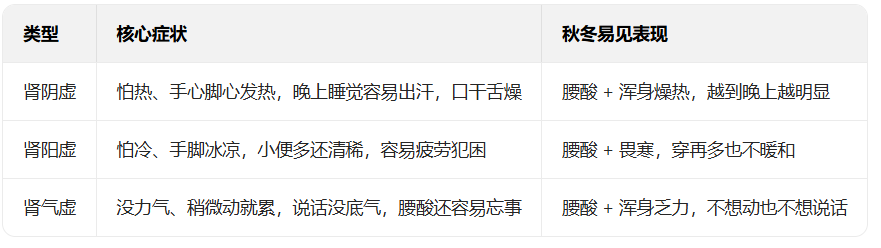 3 种肾虚核心症状对照表(秋冬自查版)