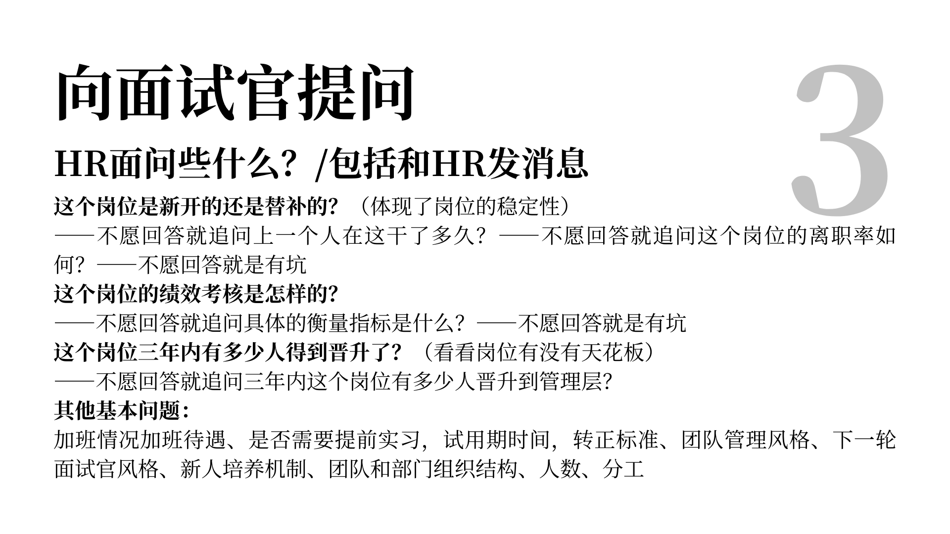 • 22:20 ⭐️问HR:岗位新开/替补?绩效考核标准?晋升情况?加班与待遇?提前实习?团队风格?面试官风格?新人培养机制?团队结构?