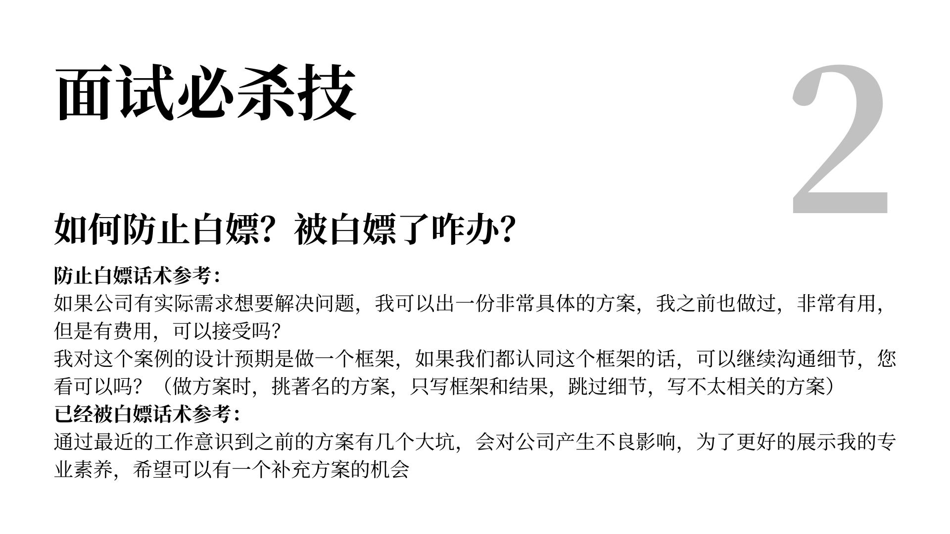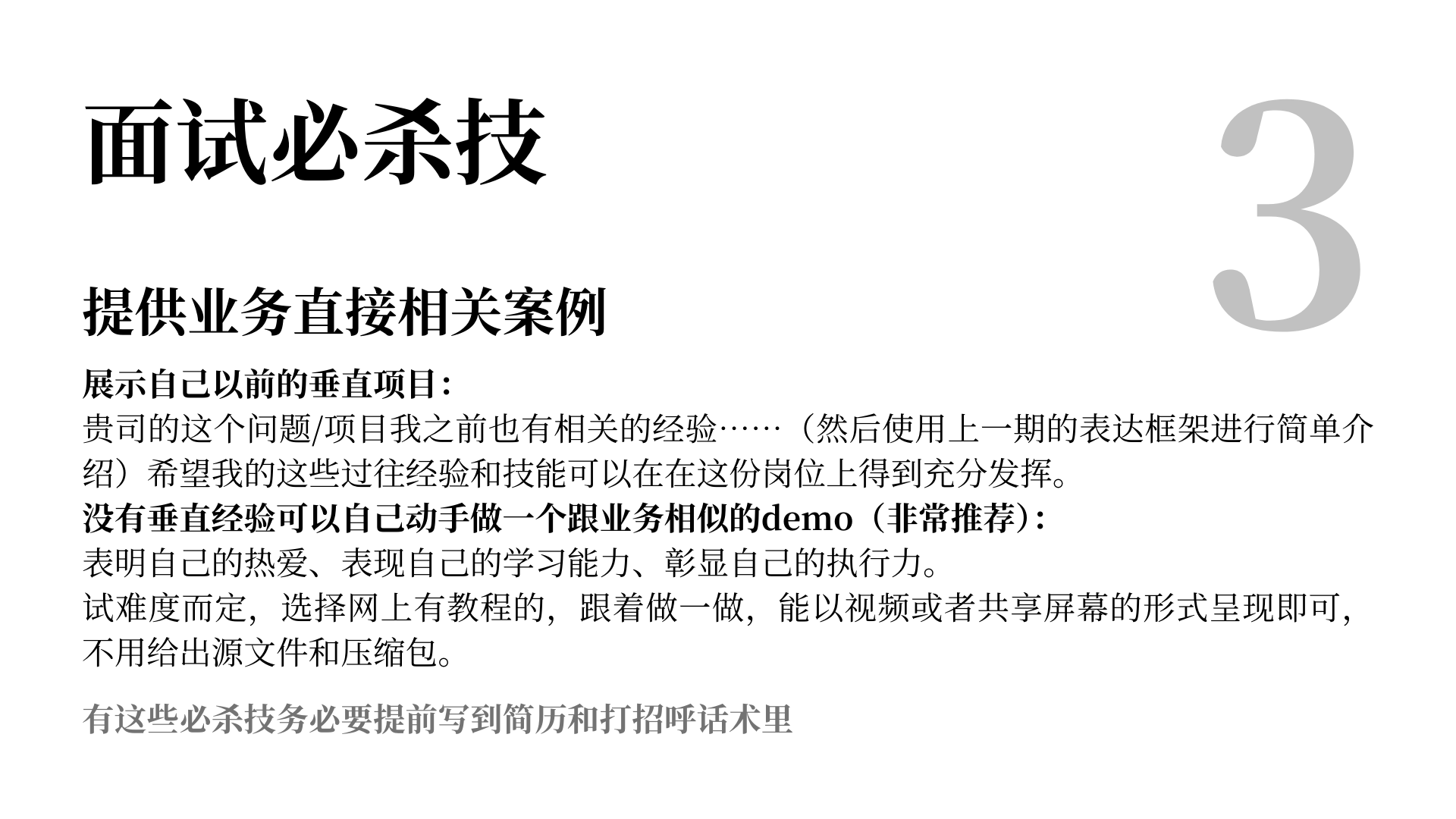 • 44:48 直接提供业务相关案例:以前相关的垂直经历、做过的Demo(案例/样品)