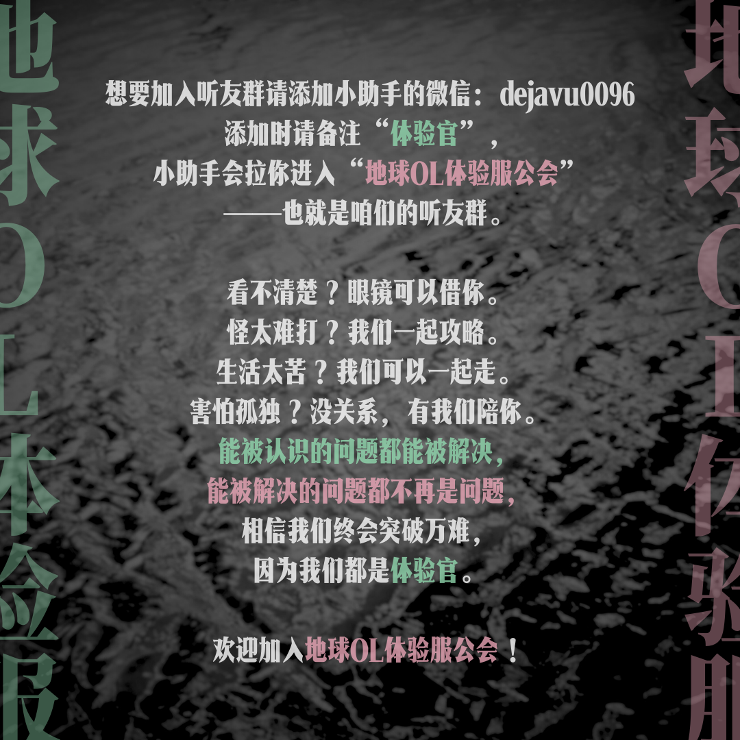 地球OL体验服,是针对地球这个开放世界的各种关卡和剧情打造的一档公会式节目。我们会在这里不定期分享地球OL攻略、奇遇体验以及聊天沙龙。在这个一生一次的游戏里,每个人都是独一无二的体验官。