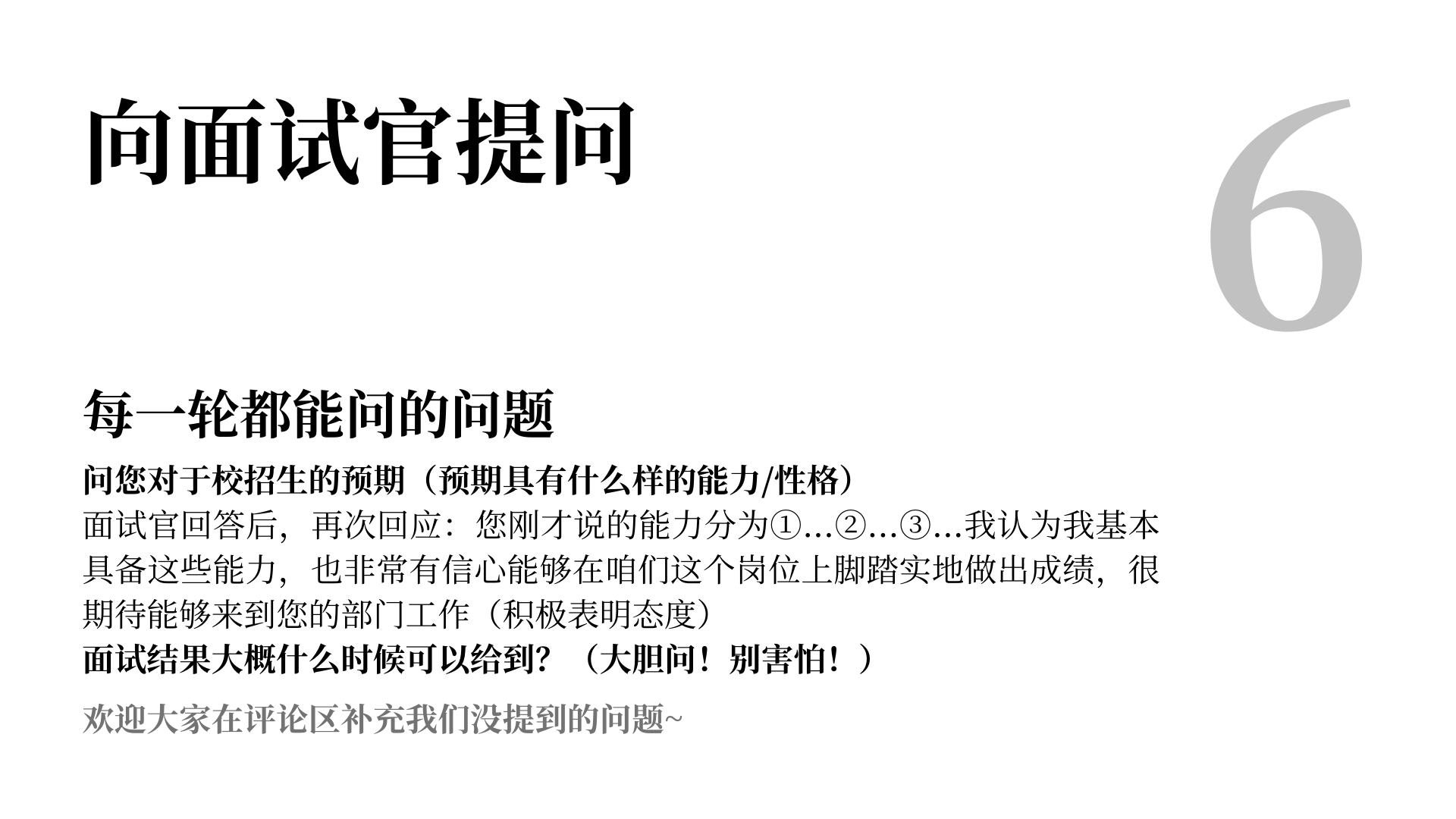 • 35:38 ⭐️通用问题:校招生预期、面试结果反馈时间(记得积极表态!)