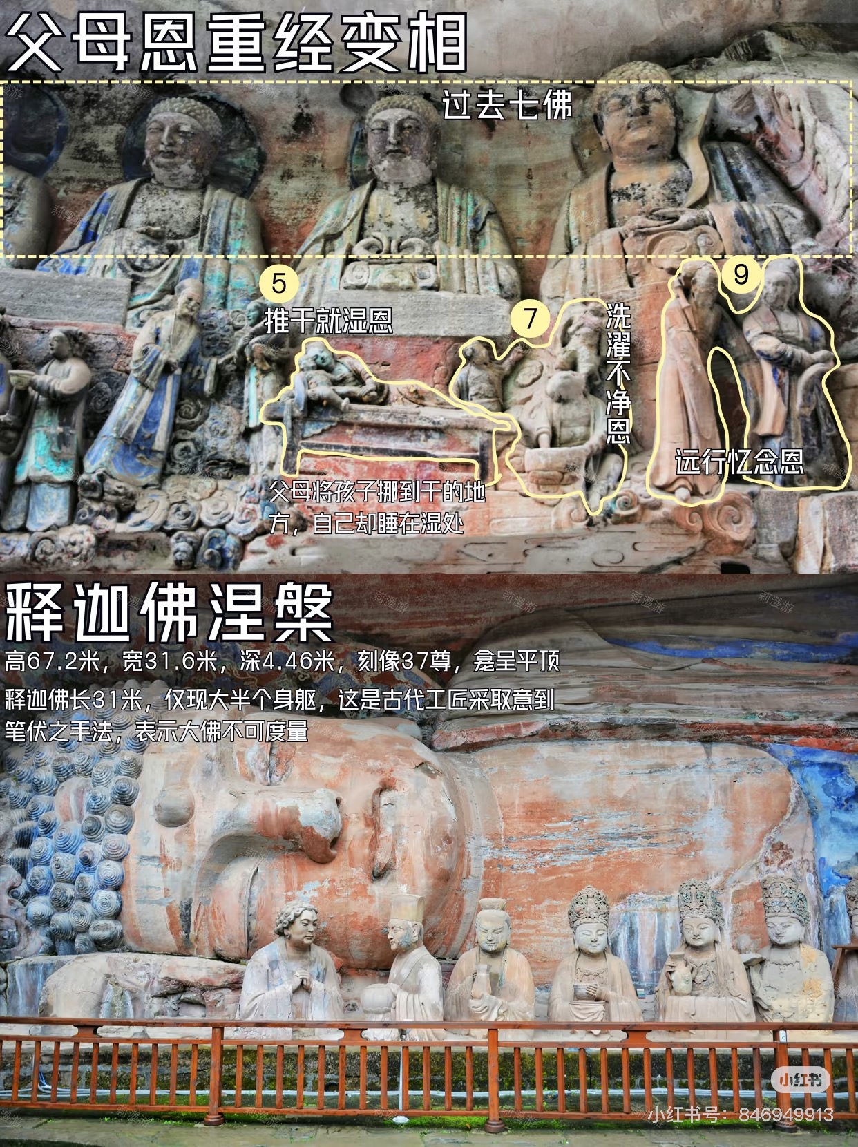 <figure>宝顶山石刻涅槃佛、父母恩重经变相 @小红书莉漫游