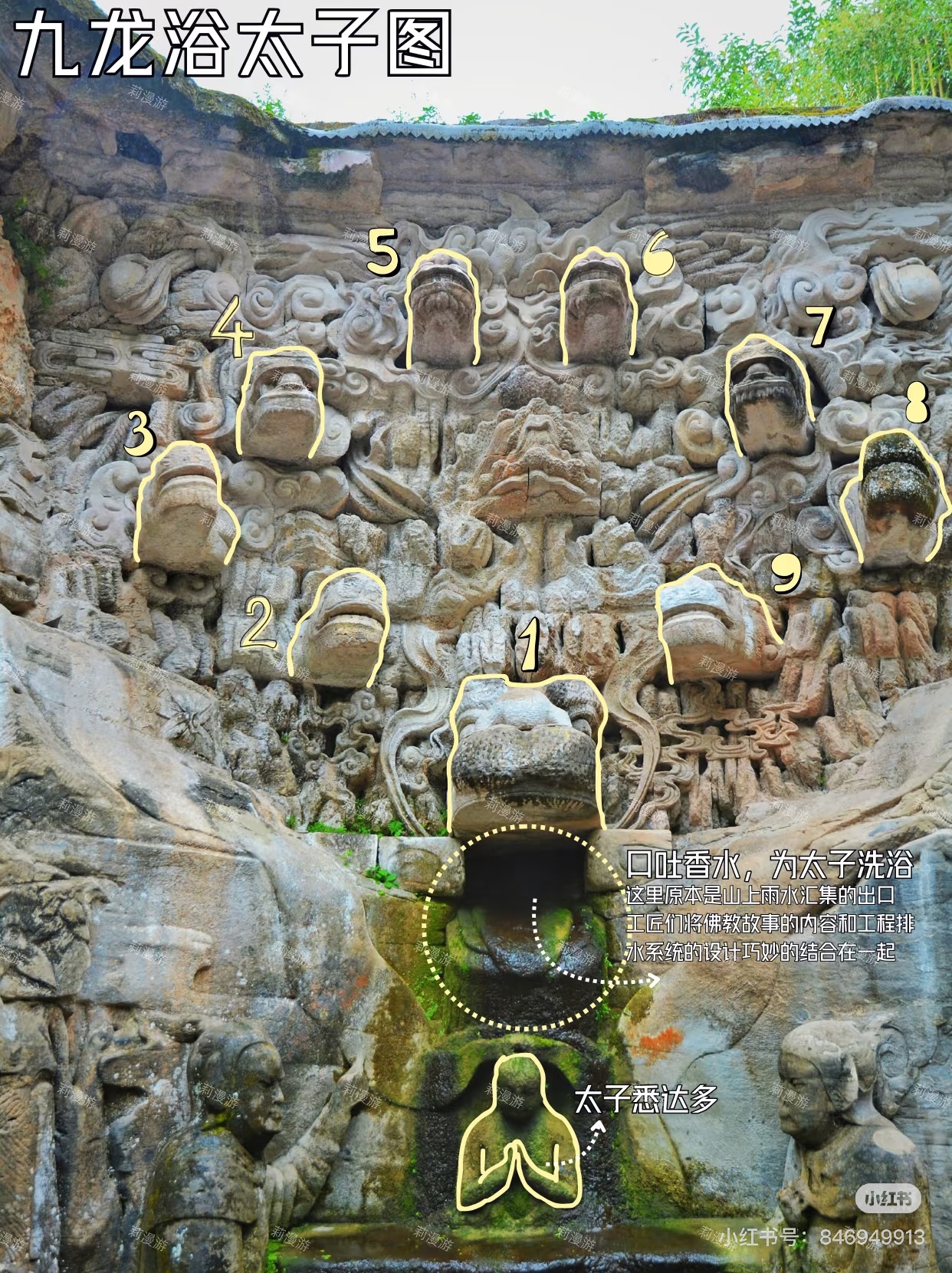 <figure>宝顶山石刻九龙浴太子图 @小红书莉漫游
