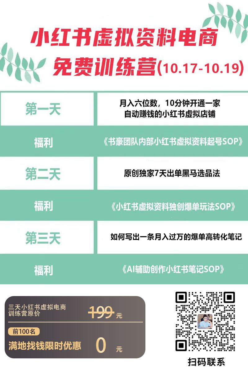 最后送上听友专属福利,价值199元的3天小红书电商快闪营,扫码下方海报或者搜索嘉宾微信(CEOSH777),备注“满地找钱听友”,前100位可以免费入营学习,还有超多福利资料等你领取!搞钱的路上,我们陪你一起 “找对路,少踩坑”!