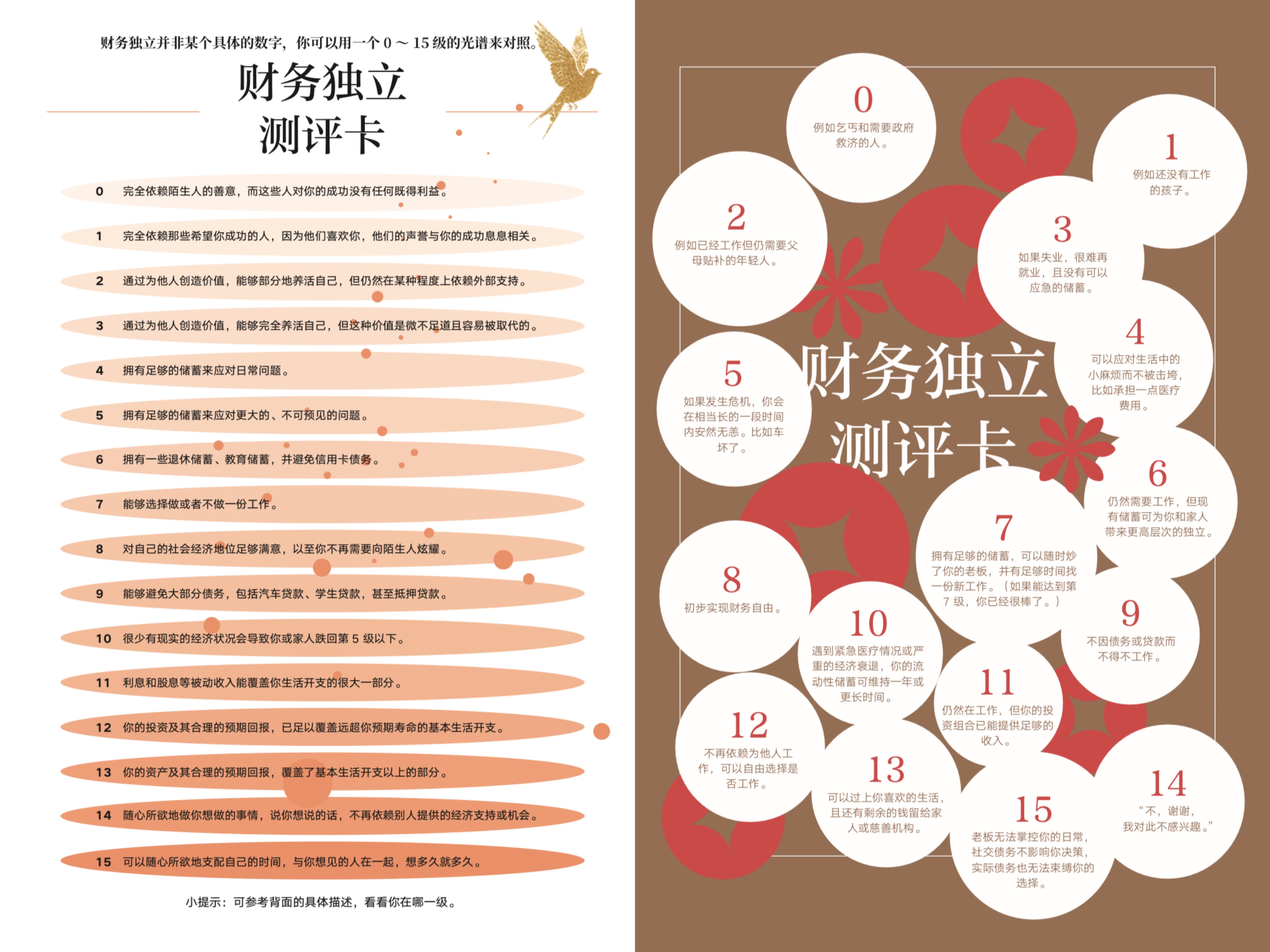 这一年的故事,绕不开两本“财富指南”:一本是全球狂销 800 万册的《金钱心理学》,教我“财富积累的核心是慢慢来”;另一本是它的续作《金钱的艺术》,告诉我“金钱只是工具,自由才是目的”,更用一张测评图帮我们定位,到底属于财务自由的哪个阶段?