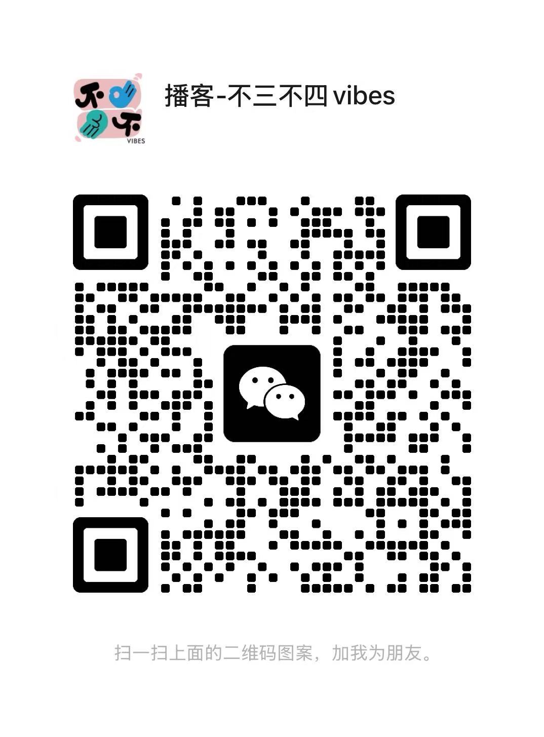- 小宇宙/喜马拉雅/苹果podcast/微信音频(全网同名):@不三不四Vibes