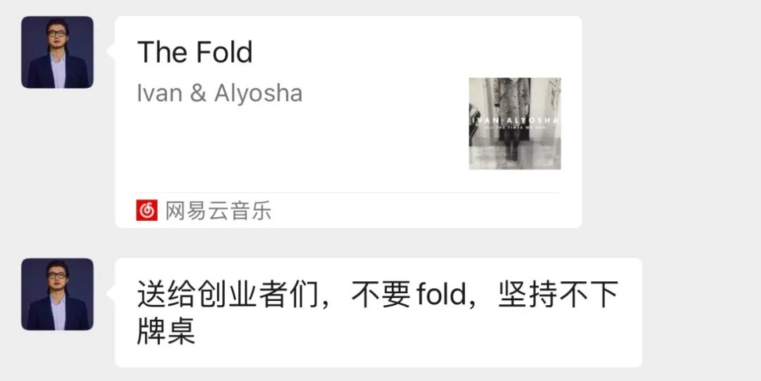 现在很多人都很丧,他希望鼓励所有的创业者,不要Fold,坚持在那里,机会总是有的。