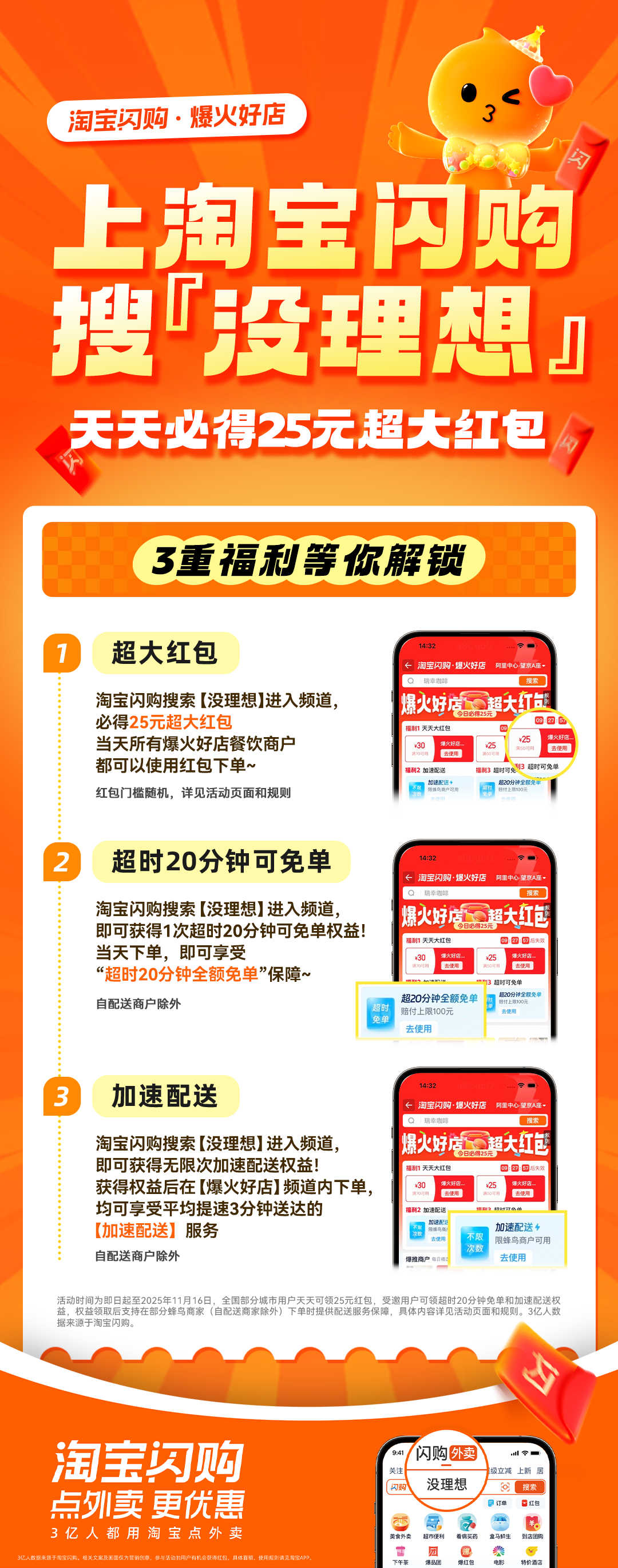 编辑部最近的午饭都是在淘宝闪购点的!搜索【没理想】领红包的同时可以直接进入“爆火好店”专区,里面都是由平台选出的品质商家。淘宝闪购性价比高送得又快,配送超时20分钟还可以享受免单权益。冬天吃得好,是富养自己的第一步!