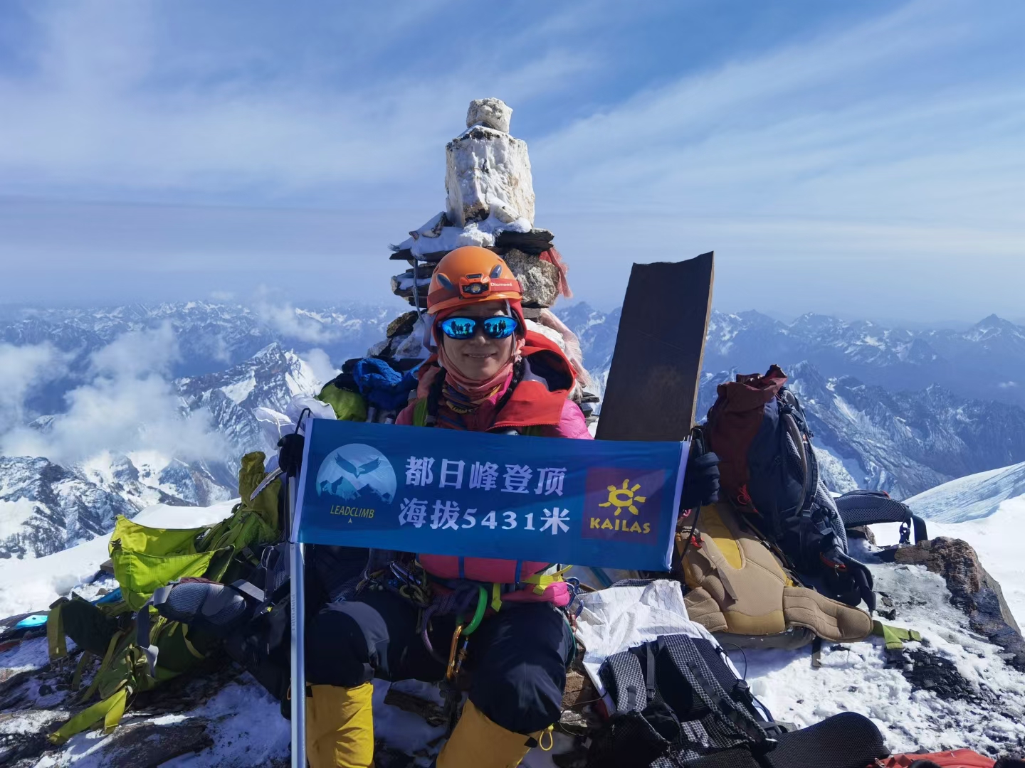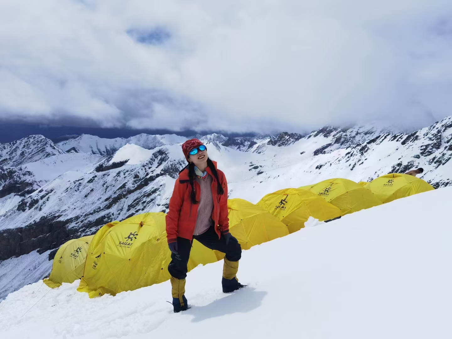 2015年,她站上四姑娘山二峰之巅,在5200米的云海之上被极致的蓝色与白色震撼。此后十年,从乞力马扎罗的风雪到雀儿山的冰壁,她用脚步丈量了十三座海拔在5000—7500米的雪山。