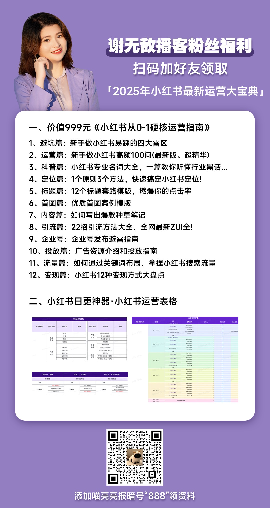 报暗号“888”,送你一份价值999元的【2025年最新版本小红书运营宝典】作为见面礼~