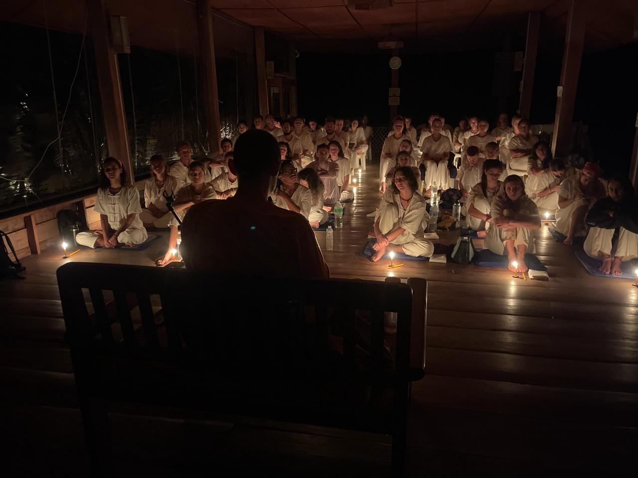 最难忘的还是禅修木屋里的日夜,饿着肚子数蚂蚁行军,围着篝火闭眼听僧人拆解“贪嗔痴”,看天灯摇摇晃晃升入星空。直到最后一场雨落下时,与偶遇禅修同伴的拥抱告别,成了整段旅程最温柔的句点。