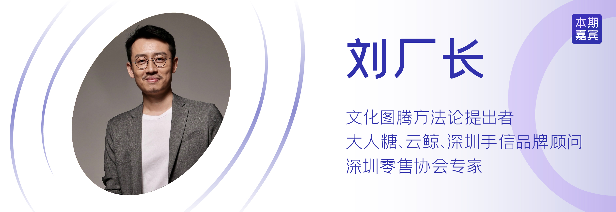 今天,我们非常高兴地邀请到了品牌战略顾问、文化图腾方法论提出者——刘厂长。作为云鲸、大人糖、腾讯EC、小米谷仓、深圳手信等知名品牌的创新顾问,刘厂长深耕品牌领域十余年,并创立“品牌创业营”,培养了大批新锐创业者。从设计师到品牌导师,他的方法论融合了实战经验与创新思维,尤其擅长帮助中小品牌在红海市场中找到差异化突围路径。