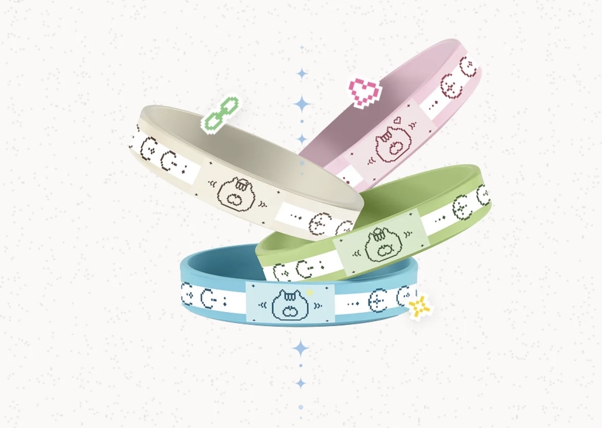 这是一款简单的手环,内置 NFC 芯片,用户可以将其与独享 APP 中一个特定的 AI 角色进行「终身绑定」,以此在现实世界中「召唤」AI 角色。