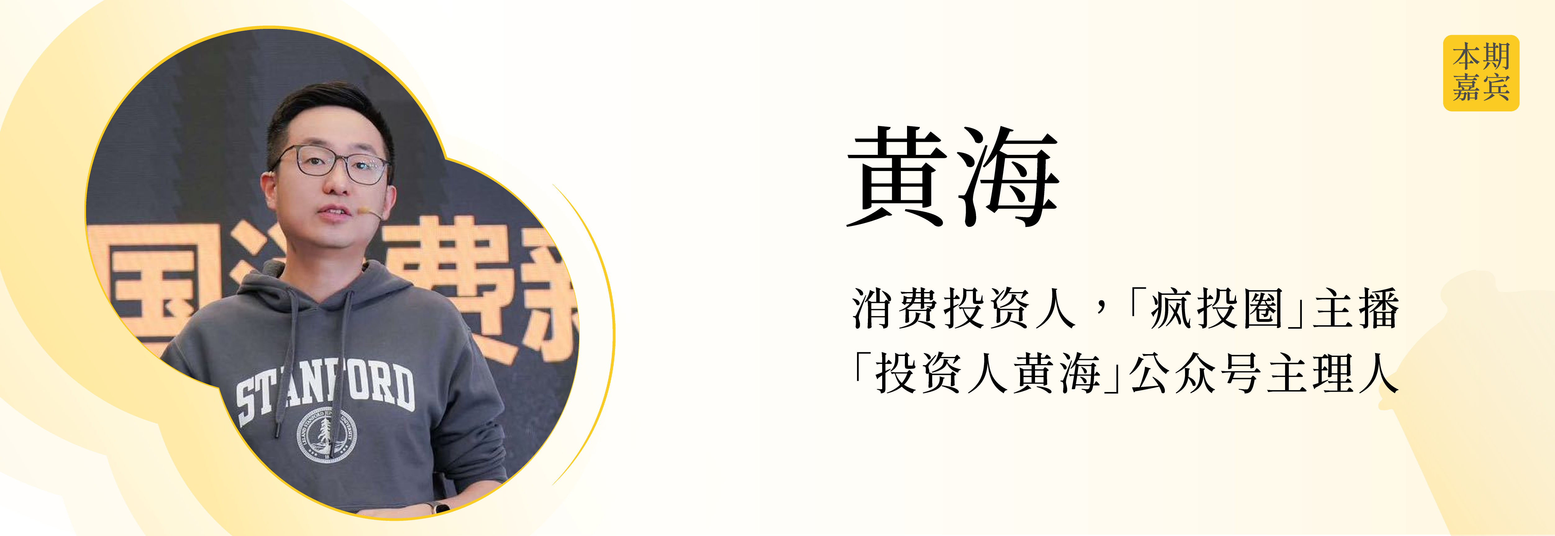 于是,我邀请到了播客「疯投圈」的主播黄海。黄海拥有超过十年的消费投资经验,也是明星品牌三顿半和Cider的首轮投资人,最近我还看了他的一本新书《趋势红利》,里面从多个维度剖析中国消费市场的未来动向,为读者提供可操作的趋势观察方法。