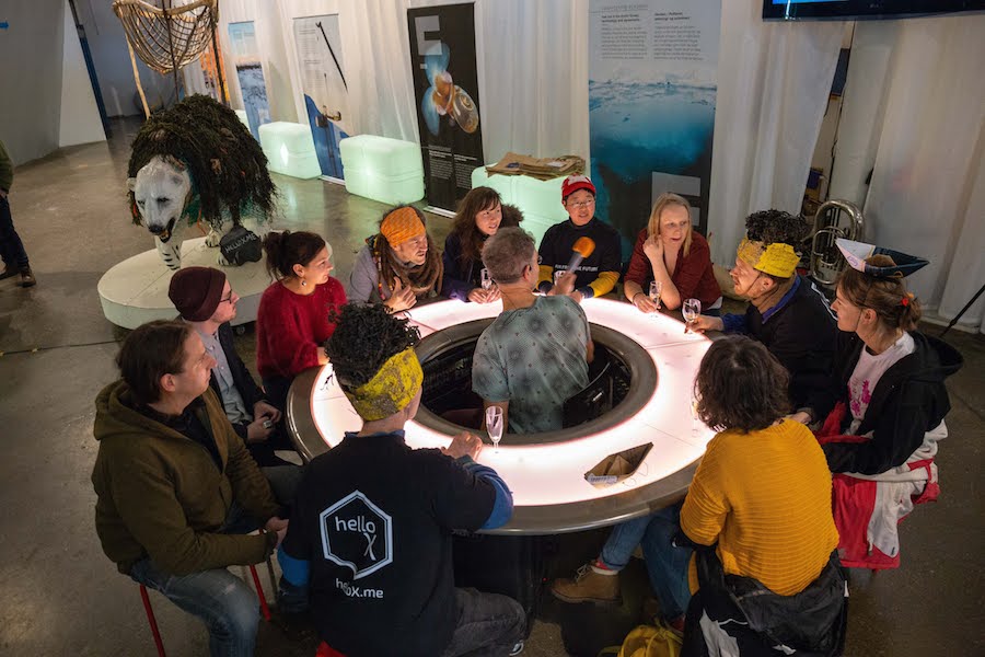 Hear also about the hello X March to the Future a parade through the streets of central Tromsø behind a ceremonial ship of dreams wearing seaweed and boats on our heads and led by the epic all-female drum corps, the Tromsø Tamborene. Check out links below to videos, pictures, and press coverage from the March to the Future. Email us a voicememo at helloX@ice-9.no and tell us what time it is on the clock of the earth. Thanks to Chin Keeler, Mikey Weinkove, the Tromsø Tamborene, Northern Norway Art Museum, and Polaria Science Center, Vårscenefest… and special thanks to all the amazing participants!