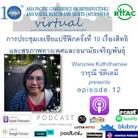 This Podcast in Thai language is produced by Warunee Kuthithamee who is among the APCRSHR10 Media Fellows 2020, and shares highlight of the 12th session of APCRSHR10 Virtual on the theme of "HIV/AIDS and sexual and reproductive health and rights (SRHR) in Asia and the Pacific".พอดแคสต์นี้โดย วารุณี ขัติเตมี ได้รายงานการประชุมออนไลน์ครั้งที่ 12 ของการประชุมเอเชียแปซิฟิกครั้งที่ 10 โดยมีหัวข้อเรื่อง เอชไอวี/เอดส์ และสุขภาพและสิทธิทางเพศและอนามัยเจริญพันธุ์ในเอเชียและแปซิฟิก เนื่องในโอกาสวันเอดส์โลก และช่วง 16 วันแห่งการรณรงค์เพื่อยุติความรุนแรงด้วยเหตุแห่งเพศ